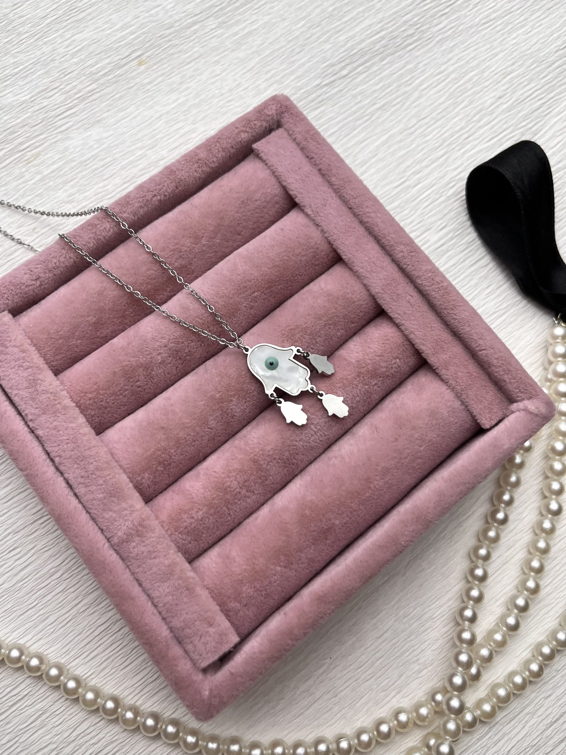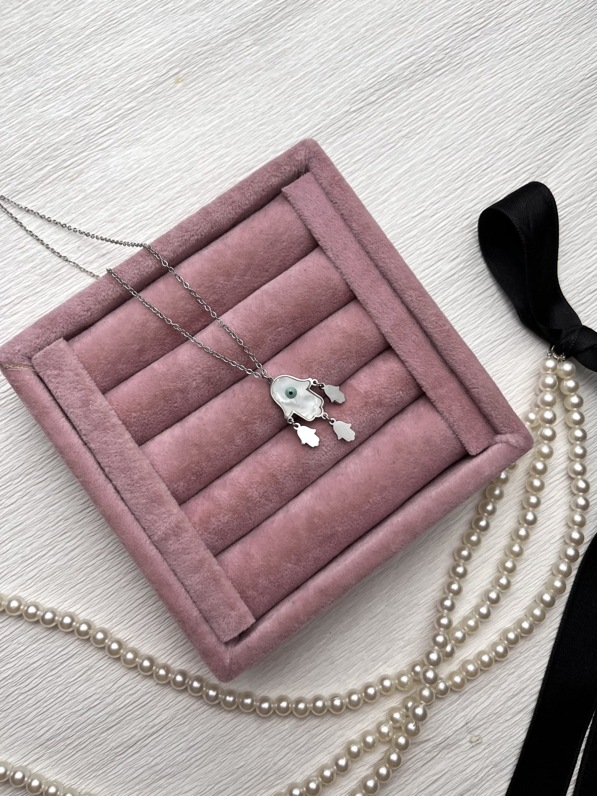 "Gümüş Rengi Nazar Boncuklu Fatma Ana Eli Figürlü Çelik Kolye " için yorum yapan ilk kişi siz olun